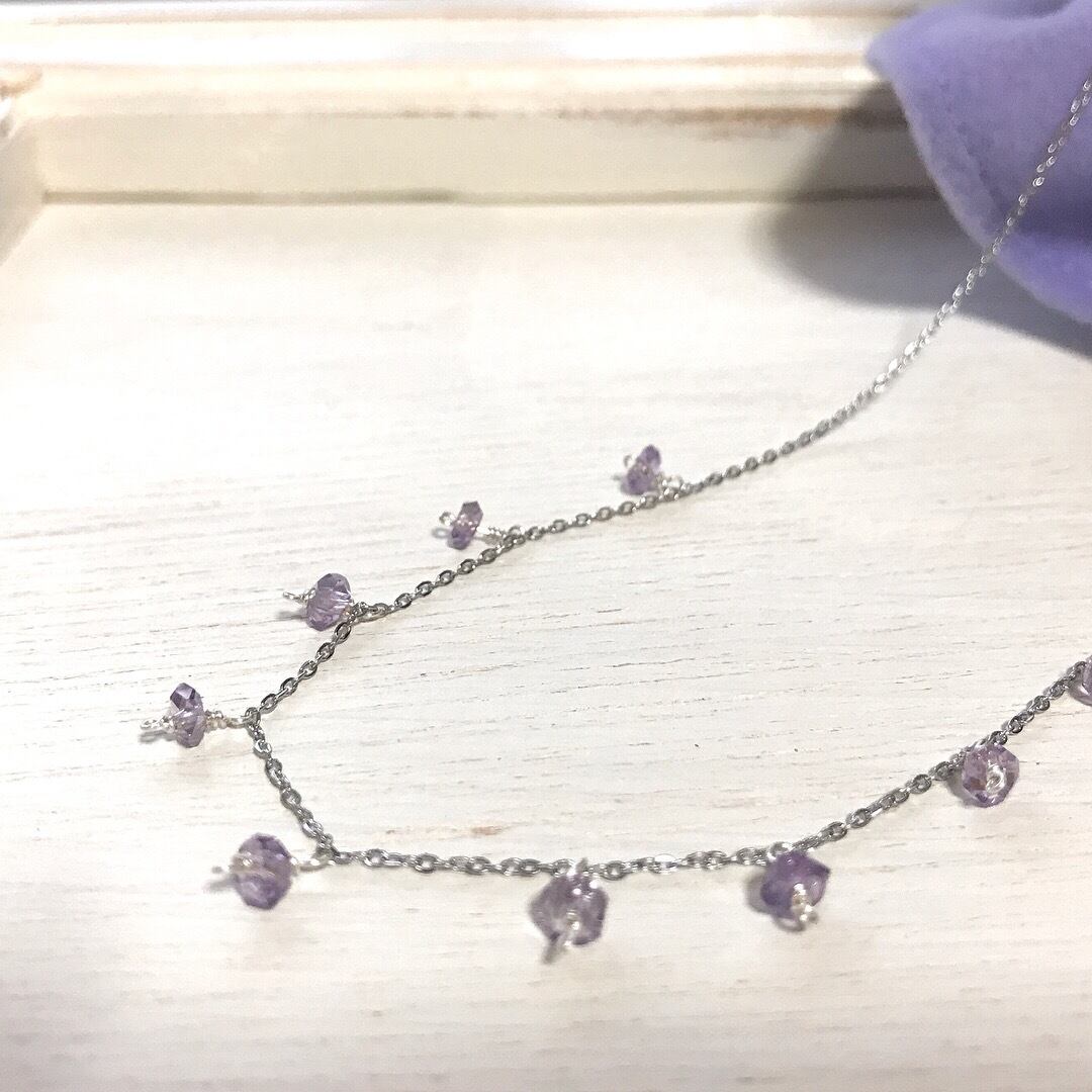 小さな小さなカット天然石9個を、細いチェーンにつなげた、