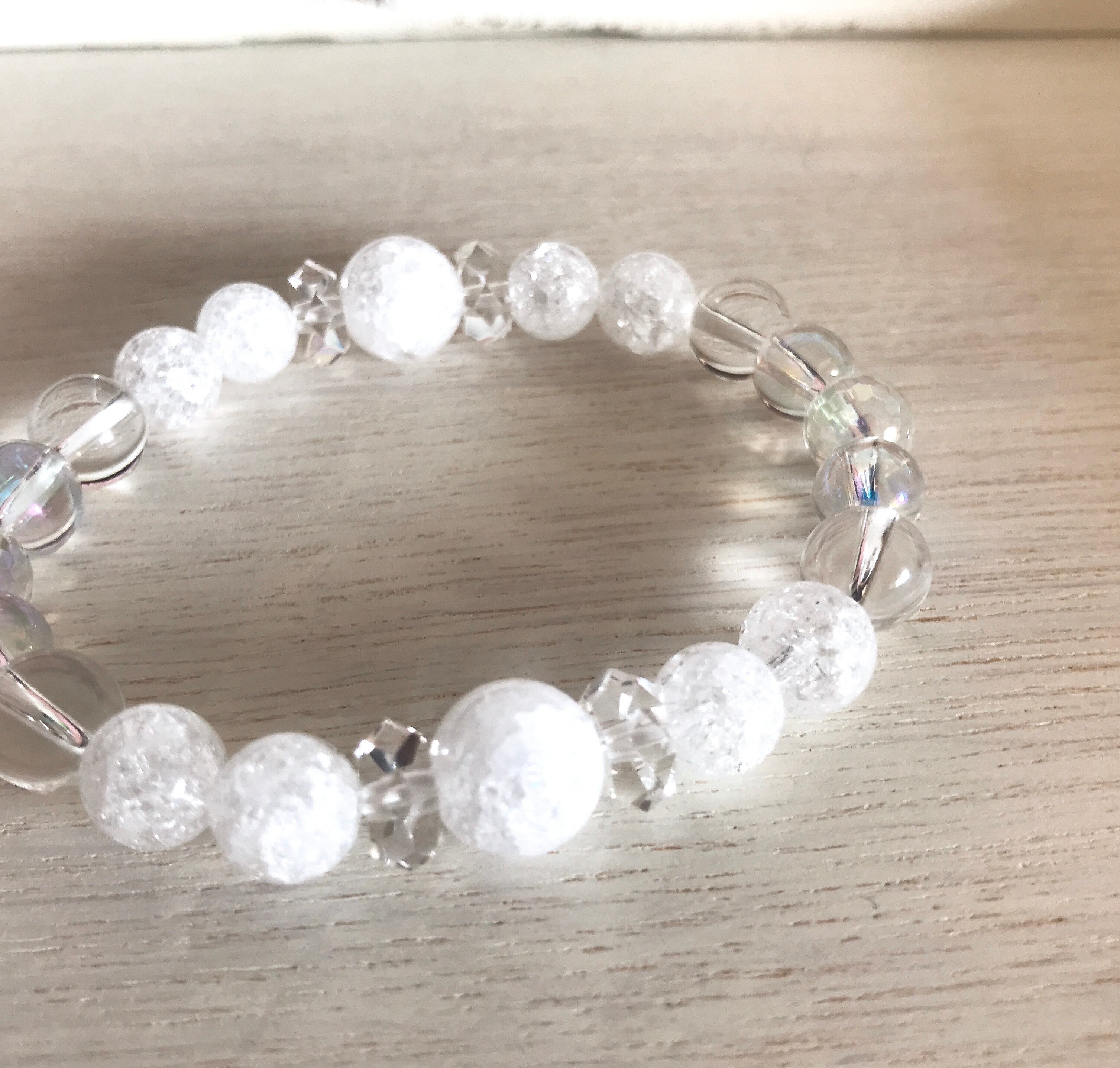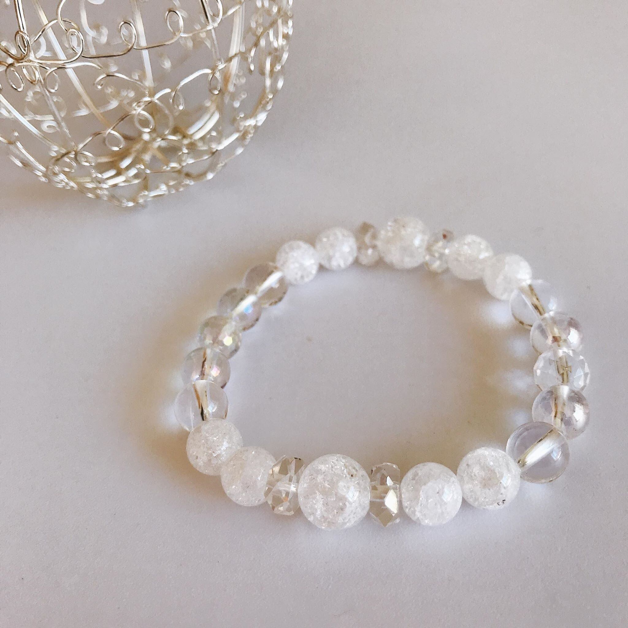 クラック水晶を使った水晶ブレスレットの再販です。