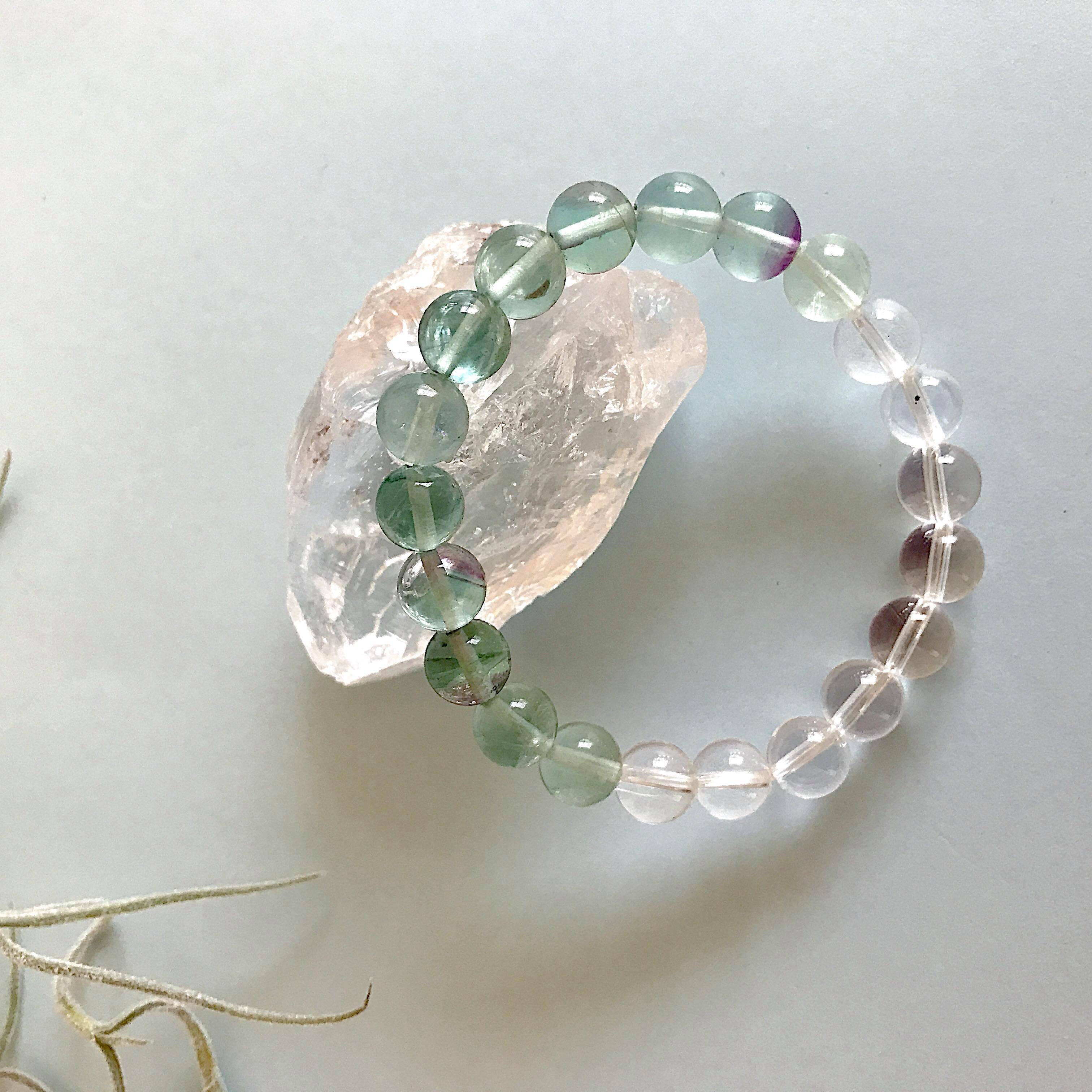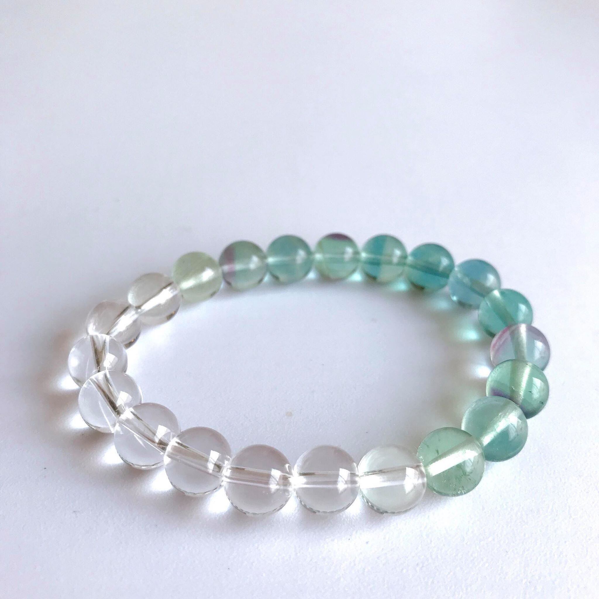 石たちの透明感が引き立つよう、透明なゴムを使用しました。