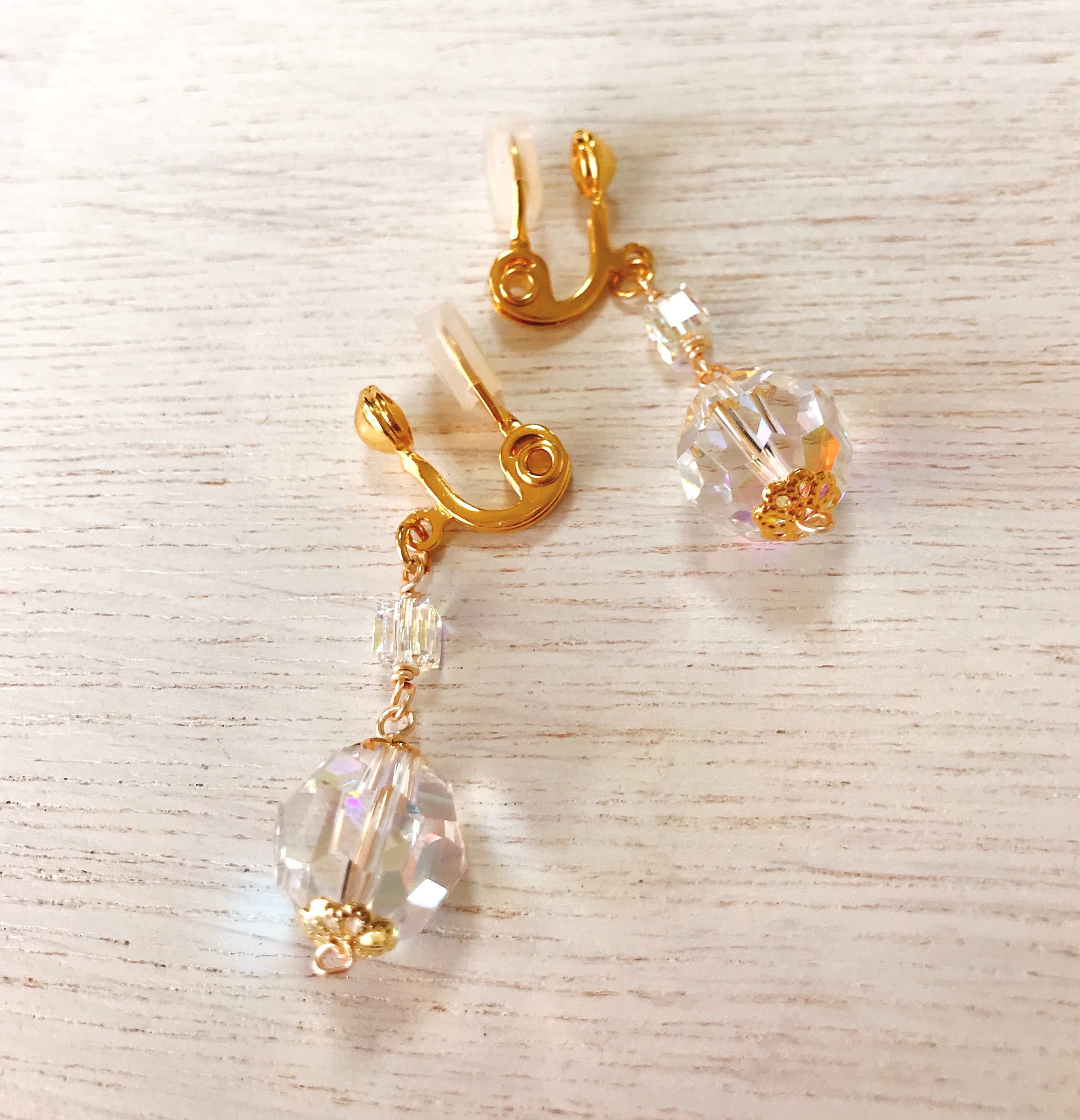 コロンとした多面カットのスワロフスキービーズをイヤリングにしたてました!