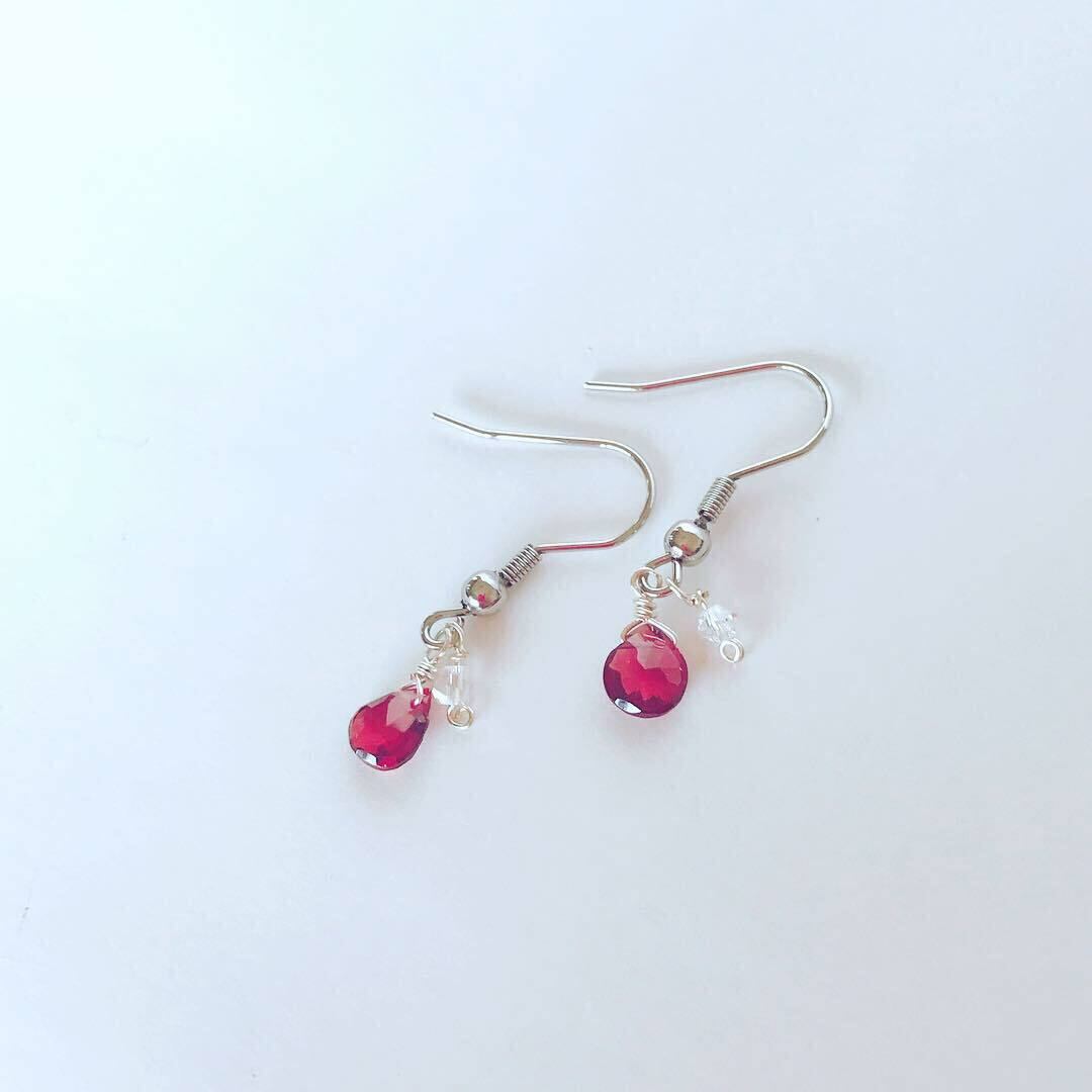 ちいさいながら存在感のある、ガーネットのピアスです。