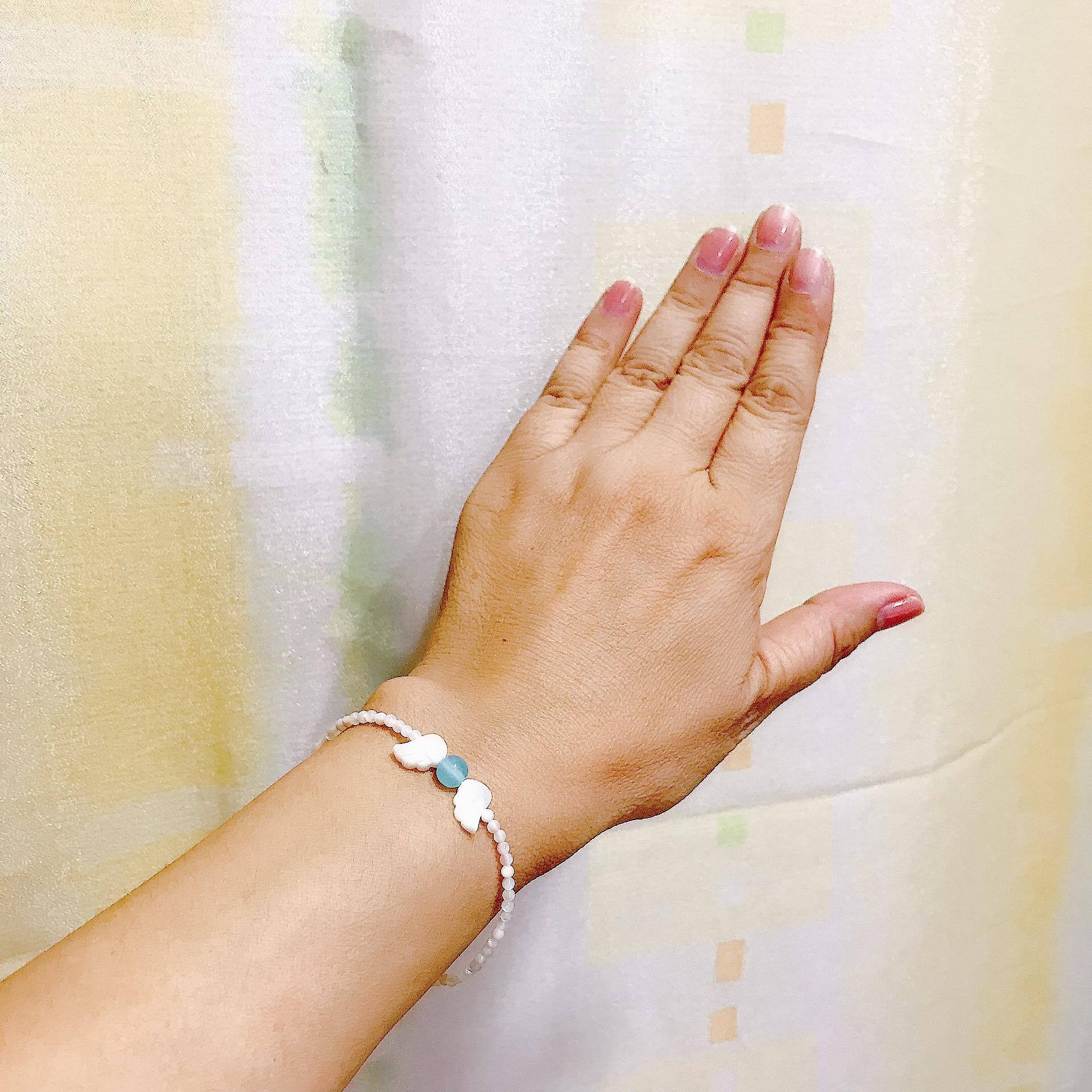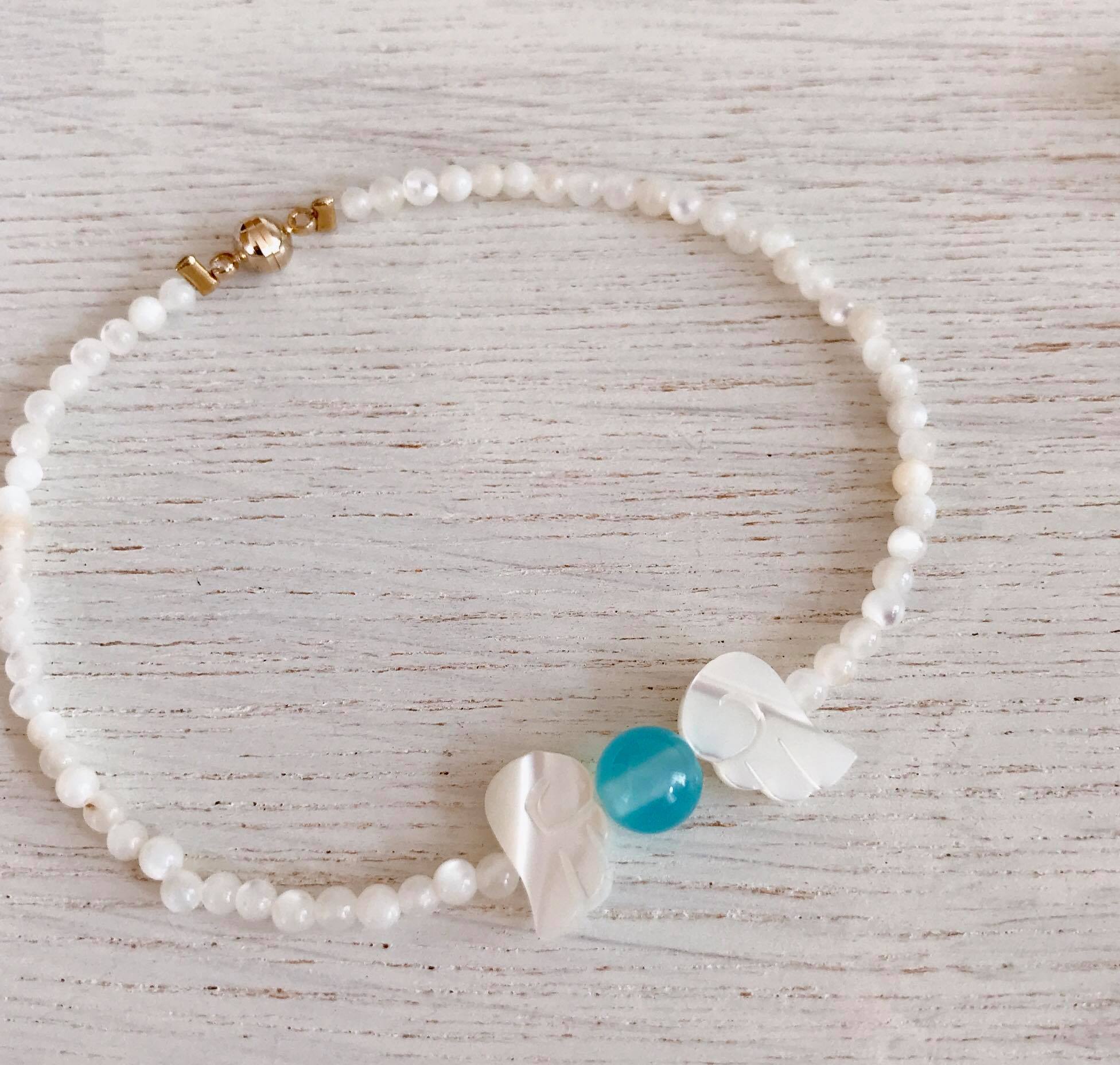 シーブルーカルセドニーとシェルの天使の羽のブレスレット