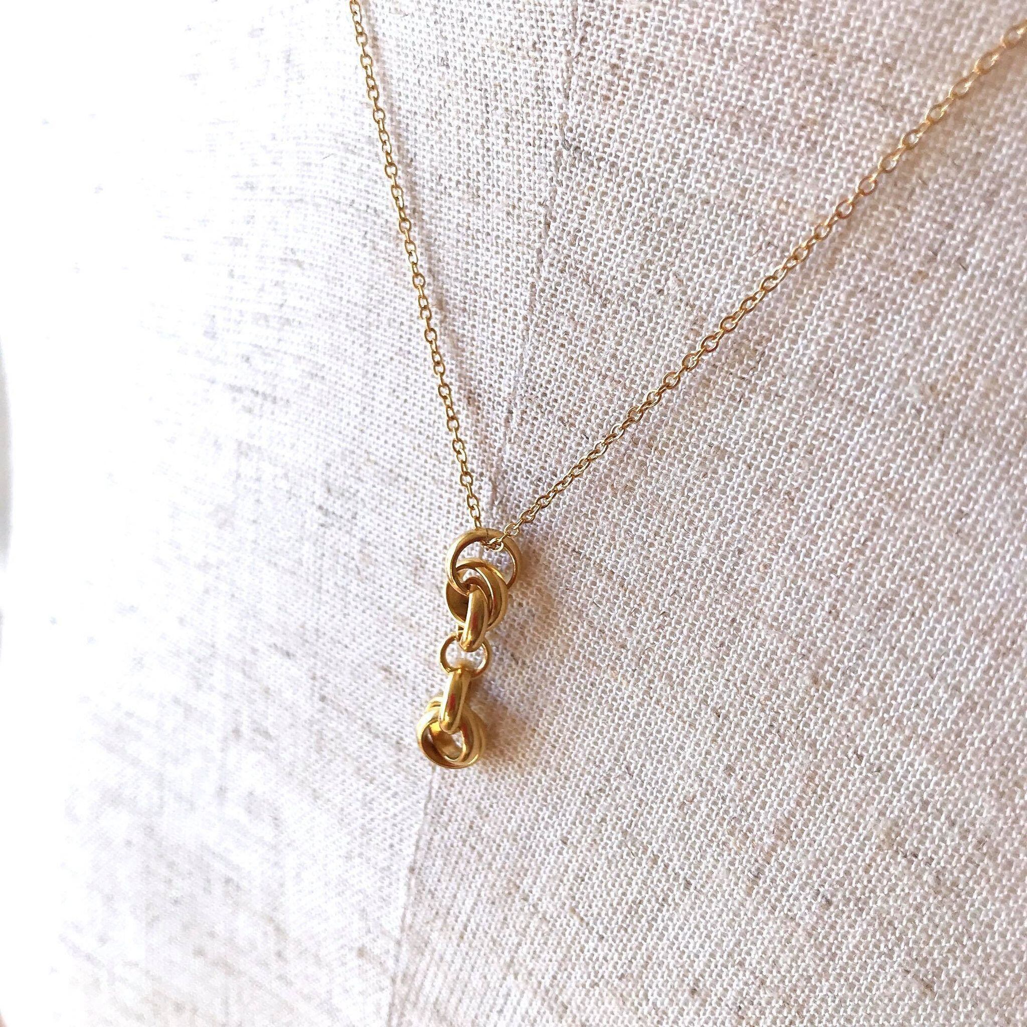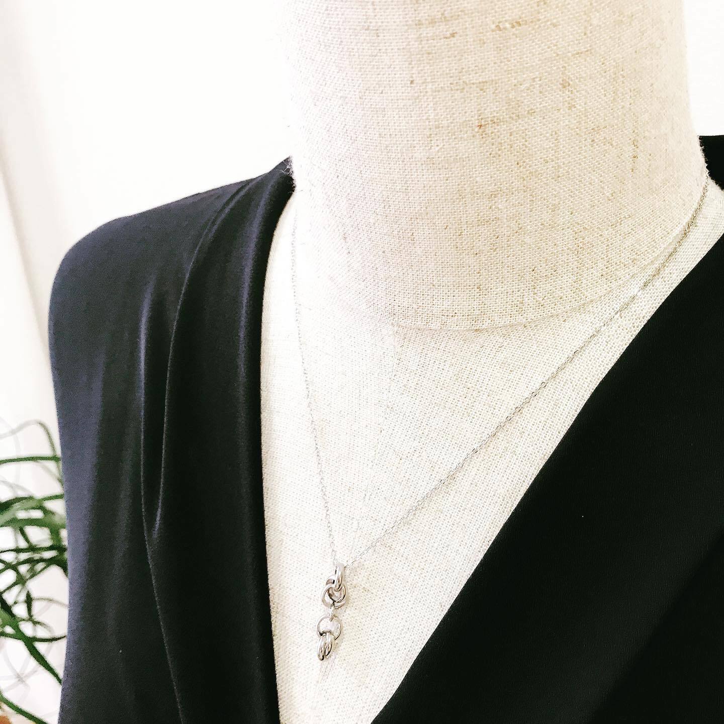 この作品の特徴は、ペンダントトップを含めすべてステンレス素材でできていることです。